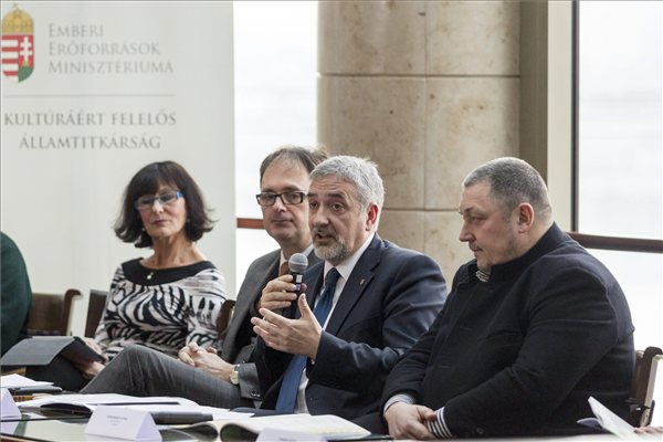 Bán Teodóra, Káel Csaba, Halász János és Vidnyánszky Attila a hétfői sajtótájékoztatón. MTI Fotó: Szigetváry Zsolt