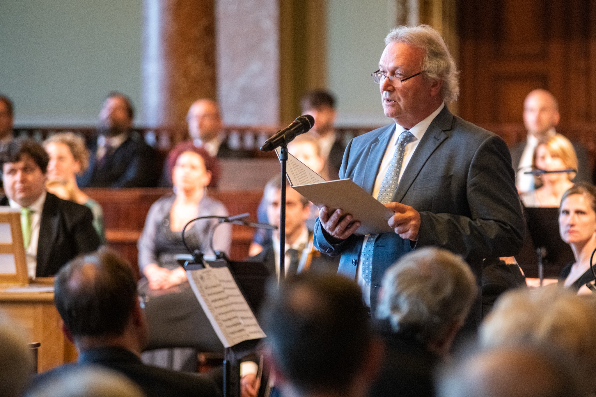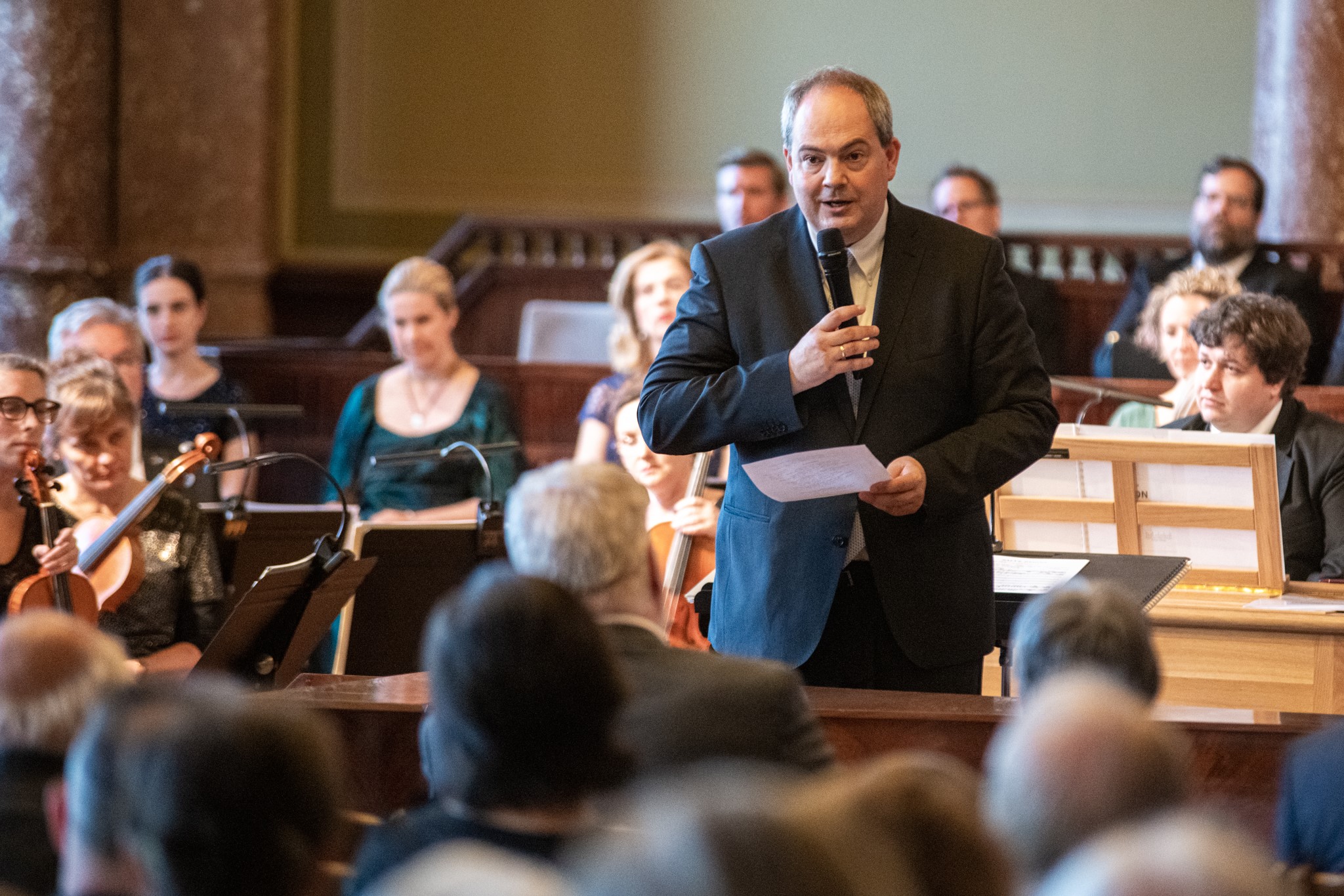 Az esten egybegyűlteket köszöntötte Vashegyi György, aki a régi zene értékeinek magyarországi támogatásával, valamint a magyar vonatkozású barokk, bécsi klasszikus és kora romantikus repertoár népszerűsítésével foglalkozó Haydneum – Magyar Régizenei Központ hivatásáról beszélt, kiemelve Haydn jelentőségét a magyar kulturális identitásban. Elmondása szerint a következő évtizedek egyik legnagyobb zenetörténeti eseménye a Werner-életmű feltárása lesz, amelyen az intézmény munkatársai jelenleg is dolgoznak. Az MMA elnöke a felcsendülő zeneművek előtt tartott, rövid zene- és kultúrtörténeti előadásaival a korszak szellemiségét is közelebb hozta a hallgatósághoz. A hangversenyen felhangzó Haydn-, Werner- és Albrechtsberger-művek között olyan is akadt, amelyet 1763 óta most mutattak be először (Gregor Joseph Werner: O Maria, semper pia – Offertorium).