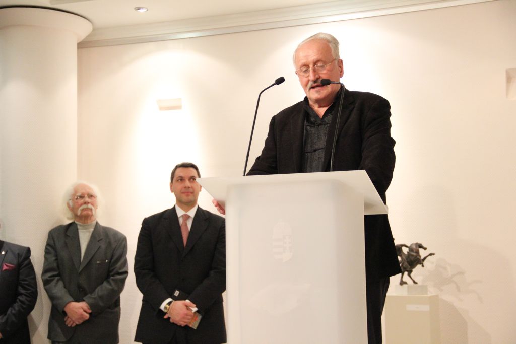 Szász Jenő, a Nemzetstratégiai Kutatóintézet igazgatója többek közt arról beszélt, hogy a kiállítótér 2013. októberi létrehozásával a Kárpát-medence kiemelkedő kortárs magyar képzőművészeti értékeinek bemutatását tűzték ki célul, és megemlítette, hogy éppen a kiállítás napján szentelte fel a galériát Erdő Péter bíboros úr.