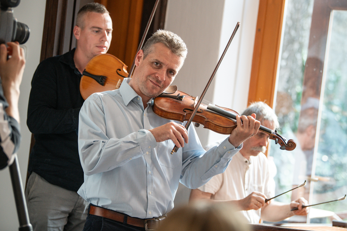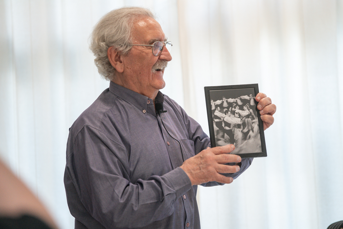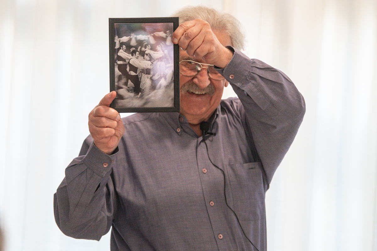 A beszélgetést követően Korniss Péter fotográfus, az MMA rendes tagja egy általa készített, Stoller Antalt tánc közben ábrázoló fotóval ajándékozta meg az ünnepeltet, s kezdetét vette a mulatság, melyhez ismét az Óbudai Népzenei Iskola kollektívája biztosította az enni-innivalót és a muzsikát.