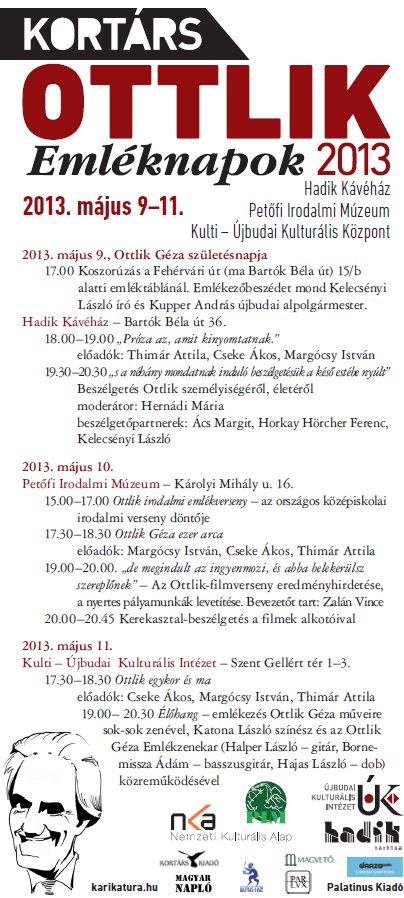 Május 11-én a szakmai programok mellett zenés összeállítással zárulnak az Emléknapok. A KULTI-ban rendezett koncerten Ottlik műveit, személyét olyan elismert művészek idézik fel, mint Katona László, a Krétakör Színház társulatának volt tagja és Halper László világhírű gitárművész, a Band of Gypsys Reincarnation formáció alapítója. A műsorban többek között az Ottlik-kisprózában szereplő szerzemények hangzanak el, köztük a La Cumparsia című tangó, a Valencia és a Yes Sir, that's my baby; kortárs átiratban, a dzsessz hagyományain átszűrve.