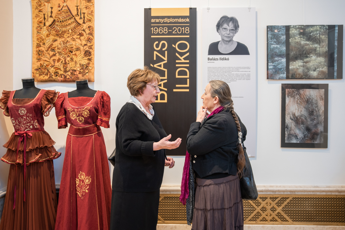 Aranydiplomások, 1968–2018. Művészeti főiskolán (ma egyetemeken) végzett alkotók ritkán rendeznek évtizedek múltán közös kiállítást, hiszen a művészek sorsa, életútja, karrierjük íve ezeket a korai közösségeket jellemzően szétbontja. Éppen ezért érdekes, hogy az 1968-ban, a Magyar Iparművészeti Főiskola különböző szakjain végzettek az aranydiploma évében közös kiállítást hoztak létre. Valóban nem könnyű egy ilyen tárlatot megszervezni, megrendezni, a feladatot azonban a lehetőségekhez képest jól oldotta meg Somogyi Pál belsőépítész és két segítőtársa, Harsay Ilona bőrtervező iparművész és Tankó Judit öltözéktervező, ők mindhárman e jeles évfolyamban végeztek. Korjelenség, hogy Ősz Ilona Dániában, Uresch Zsuzsa Németországban, Kuchta Klára Svájcban tudott érvényesülni, de az is, hogy mindhárman ma már egyre intenzívebben kötődnek szülőhazájukhoz. Mások itthon váltak tervezővé, kézműves tervezővé. A pályák ívét a sokféle tárgyegyüttessel izgalmas követnünk, a szóródás nagy, a válogatás egésze azonban szakmai kuriózum.Feledy Balázs