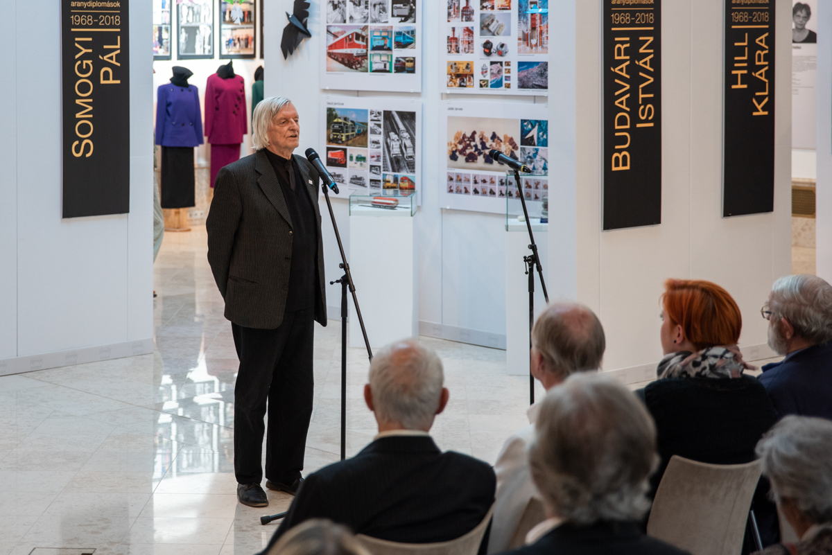 A legendás 1968-as év – mintha csak egy Cseh Tamás-dal venne kezdetet. Félszáz éve, 1968-ban az akkor még Magyar Iparművészeti Főiskolaként jegyzett, mára Moholy-Nagy Művészeti Egyetemmé átnevezett intézményben végzett alkotók tárlatának ad helyet a Vigadó Galéria hatodik emeleti kiállítótereinek egyike. A diplomát, ezzel a tervező- és ipar-, vagy képzőművészeti tevékenységre jogosultságot ötven éve, egy évfolyamon megszerzett alkotók persze nem lehetnek mindannyian jelen, hiszen néhányuk végül mégsem ezen a területen találta meg élete hivatását, illetve közülük többen már nem ünnepelhették együtt aranydiplomájukat.