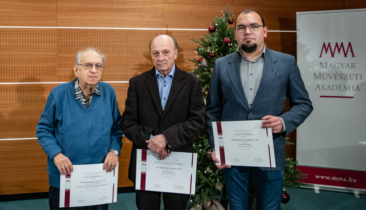 Serfőző Simon Arcunk az ég című verseskötete kapta a Magyar Művészeti Akadémia Irodalmi Tagozatának az év legjobb könyvét elismerő díját. A 2019-es Könyv Nívódíjat Kabdebó Lóránt Esettanulmányok? Sorsvállalások! és Marcsák Gergely Fekete-Tisza című kötete nyerte el. A díjakat az Élőfolyóirat sorozat estjén adták át december 12-én az MMA Andrássy úti irodaházában. Az irodalmi találkozón a könyveket Ágh István költő, író; Füzesi Magda költő és Nagy Zoltán Mihály író, az MMA rendes tagjai méltatták. Újhelyi Kinga és Lázár Balázs színművész, valamint Dresch Mihály dzsesszzenész közreműködött. Az év legjobb könyve díjat tavaly Kontra Ferenc vehette át Az álom hídja című regényéért.