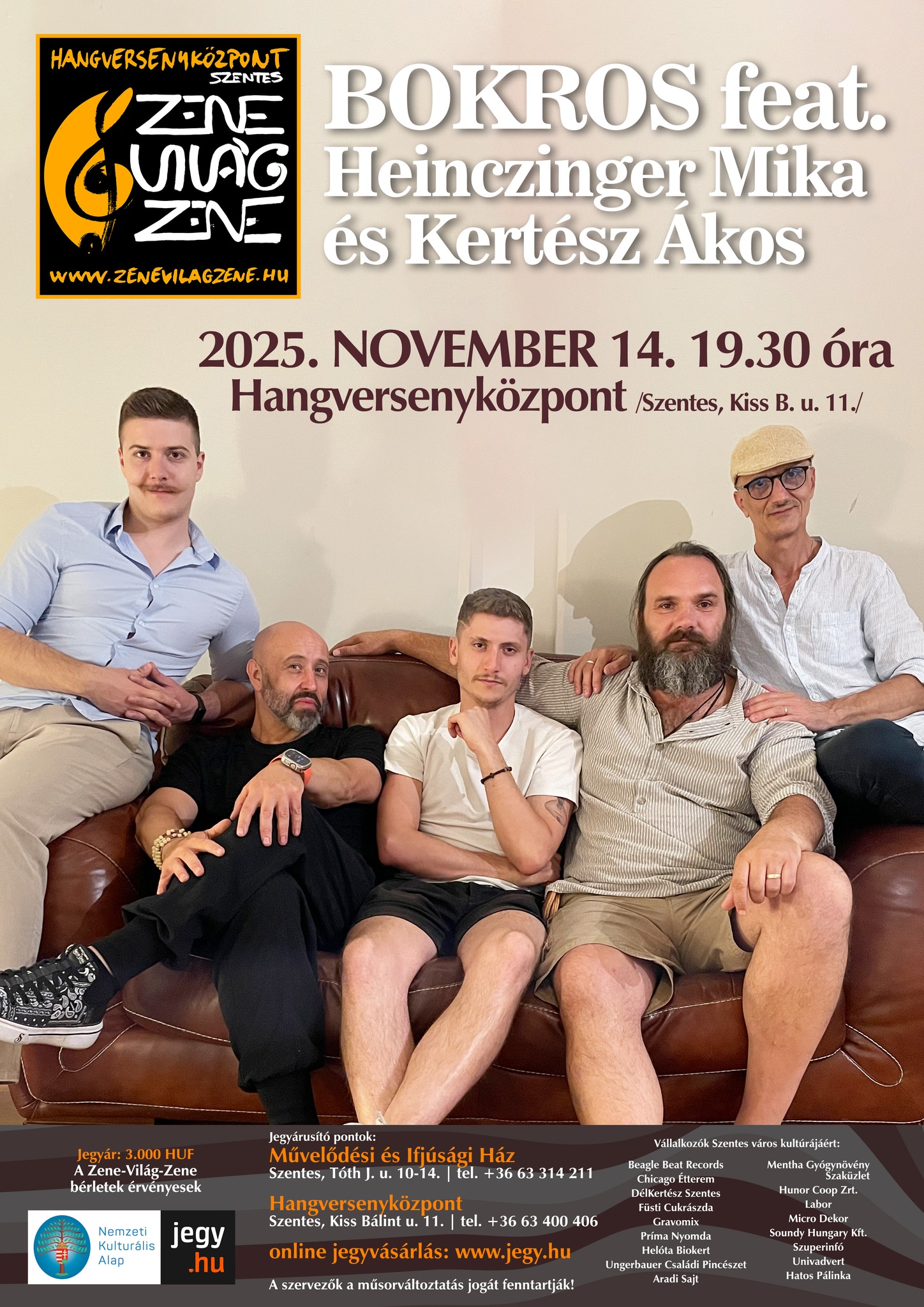 Páros csillag címmel világzenei koncertet ad Szerényi Béla vezetésével a Bokros együttes, valamint Heinczinger Mika és Kertész Ákos Szentesen. A Zene-világ-zene sorozat keretében a program megvalósulását támogatja a Magyar Művészeti Akadémia.
